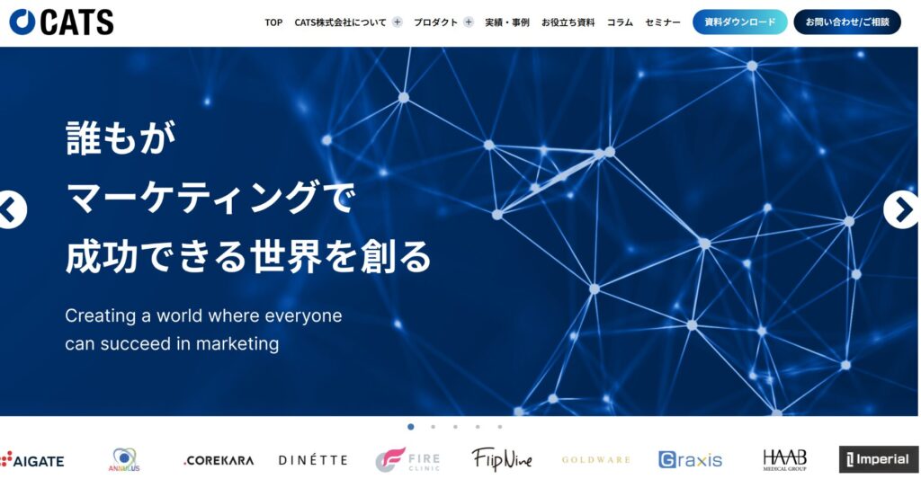 特徴:CATS株式会社は、マーケティングSaaS事業会社。数々の開発実績・ノウハウを活かしお客様のご要望に最適なWebシステムを提案します