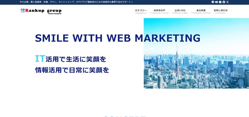 特徴:ランクアップ株式会社は、中小企業・個人事業主・店舗・サロン・ECサイトなどのオンライン集客を支援するマーケティング企業です。SNS広告運用代行やWebマーケティングの仕組み構築を通じて、「理想の顧客が自然と集まる」実践的な集客ノウハウを提供。