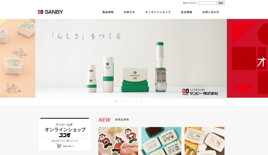 特徴:サンビー株式会社の「オリジナルスタンプ工房」では、創業100年以上の歴史と実績を活かし、日付印やゴム印、浸透印など多彩なスタンプのオーダーメイド制作を提供しています