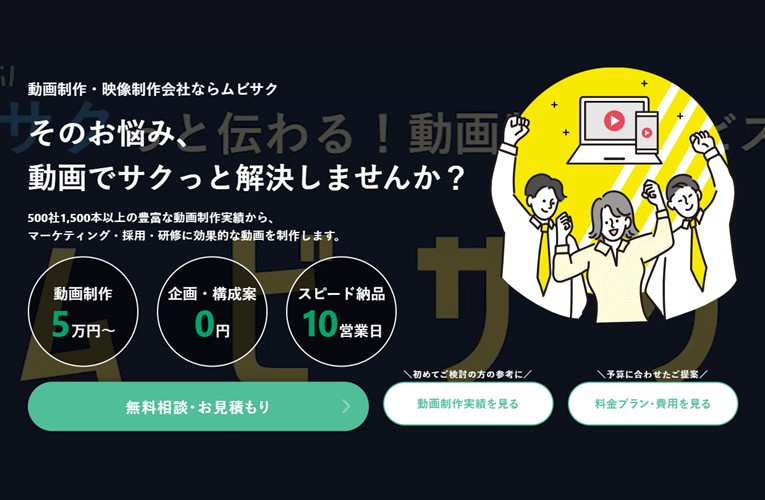 特徴:動画制作・動画マーケティングを提供する会社です。1本5万円からの低価格で、企画・構成案は無料、最短10営業日のスピード納品が可能。YouTube・Instagram・TikTokなどのSNSコンサルティングも手掛けており、飲食店の集客やブランディングに効果的な動画マーケティングをサポートします。